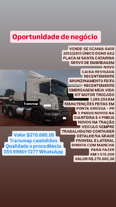 #Transmap #Caminhões #ScaniaG400 #VendaDeCaminhões #Oportunidade #Caminhão #Transporte #Logística #PontaGrossa #SantaCatarina #VeículoDeCaminho
