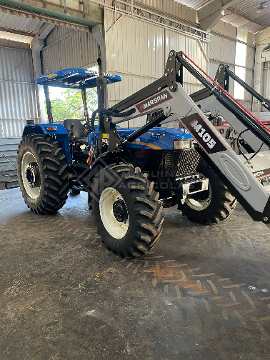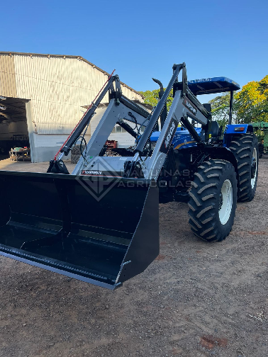 Trator agrícola marca New Holland, modelo 7630/4, com redutor de velocidade, motor com 1310 horas, Pneus 18,4x34, pesos dianteiros e traseiros, conjunto de concha marca Marispam com Joystick, modelo M105, ano 2022 299.000.